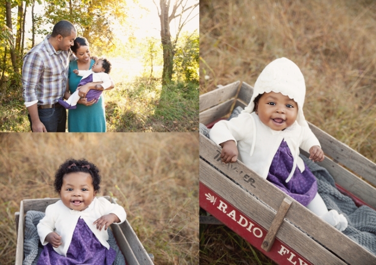 After our session was rained out twice, we were finally able to take this little one’s 7 month portraits! The light was just beautiful and this little one was just so happy and content. Why did I name this post What to Wear? This little one’s mama always picks out the best outfits.(see here and here) What a perfect fall session – their clothes coordinated perfectly, lots of smiles from their little one, and beautiful light!